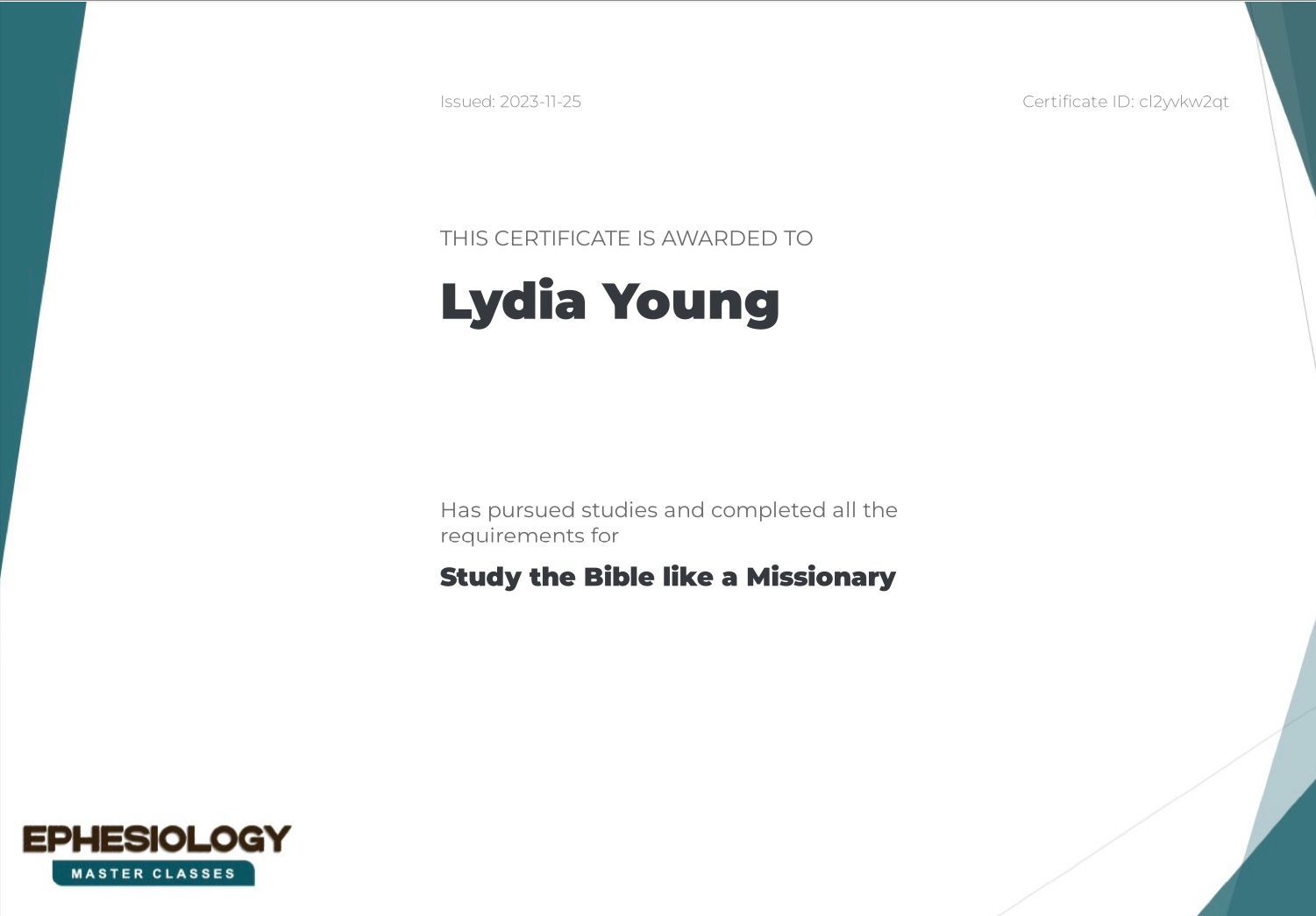 Lydia aspires to hear God say, "Well done, thou good and faithful servant; enter into the joy of the Lord."